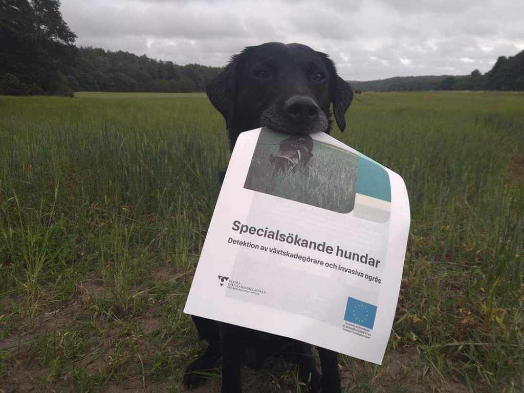 Två av dem är utbildade civila narkotikahundar. Det är Frej och Nizze. Frej är även med i projektet där vi söker invasiva ogrässorter . Frejs söner Mio och Emil söker också efter invasiva ogräs. Thor, Loke och Melker jobbar med vägglussök. På fritiden tränar vi jakt och startar på både B-prov och WT.”