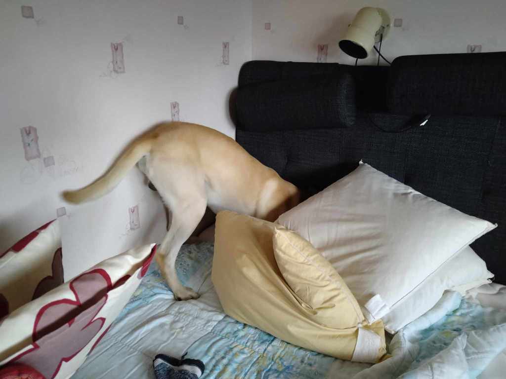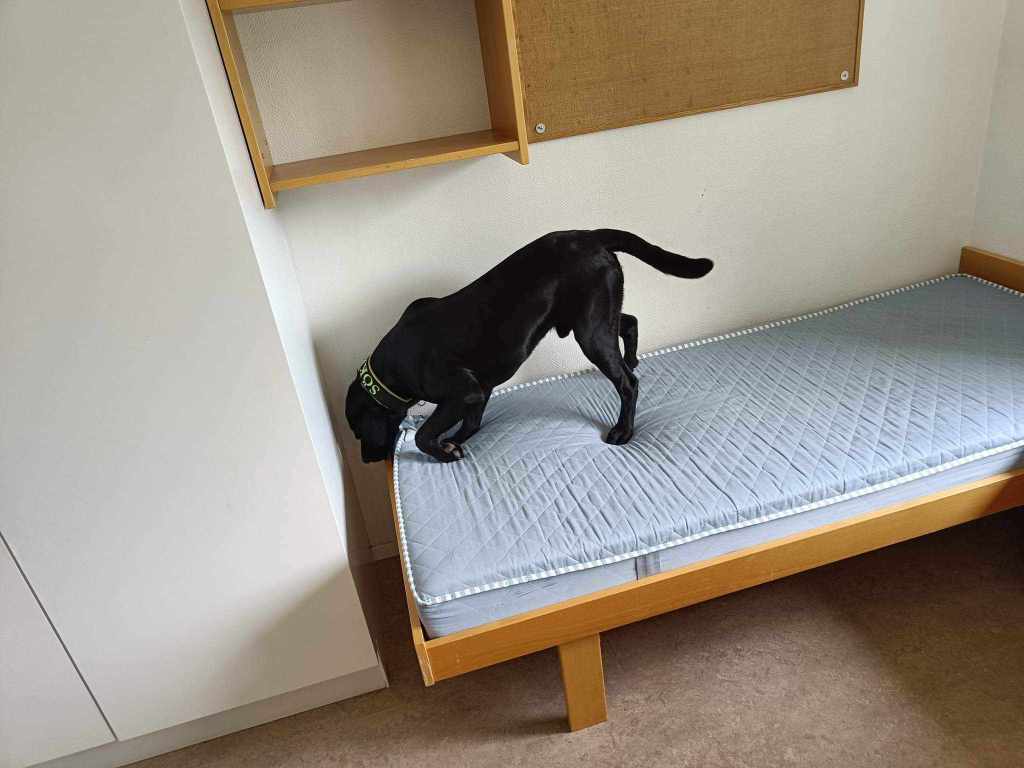 ”Vägglöss utsöndrar en specifik doft som hundarna tränas att leta efter och markera. Hundarna behöver vara uthålliga och orka jobba länge. De måste också vara mycket noggranna för att hitta enstaka små vägglöss. De jobbar i många olika miljöer där diverse störningsmoment kan förekomma. Tex i folks bostäder där det finns dofter av hundar, katter, kaniner mm men är så fokuserad på sitt jobb brydde han sig inte om det alls.”