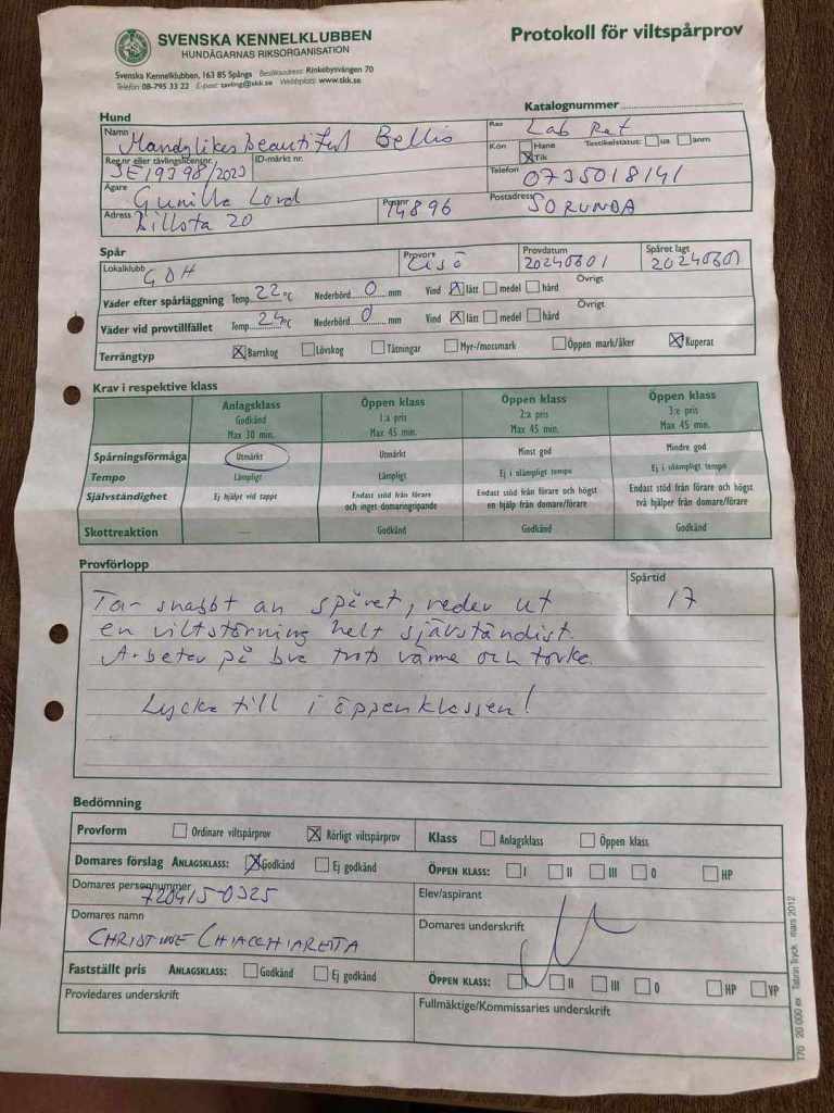 1 juni, 20241 juni, 2024 sus59 Viltspår Idag klarade Mandylike’s Beautiful Bellis anlagsprov i viltspår med godkänt resultat! Dela detta: Dela på X (Öppnas i ett nytt fönster) X Dela på Facebook (Öppnas i ett nytt fönster) Facebook Gilla Laddar in … Relaterade