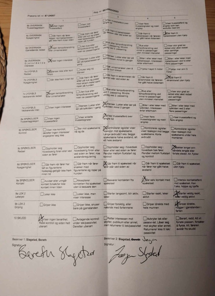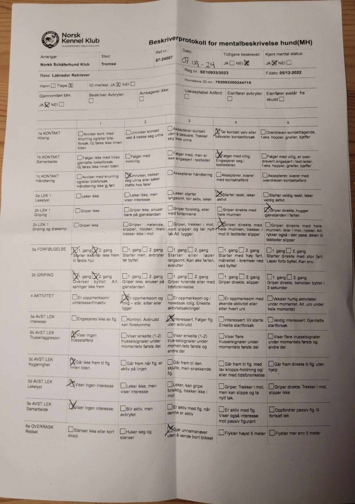 ”Vi var å gikk mentaltest med Mandylike’s Adeline ”Smula” i går for Tromsø Schærferhundklubb. Hun viser seg som en åpen, kul, balansert og modig hund med god avreagering. Testleder måtte le litt av henne, da ”haren” kom ut av skogen var hun eneste hund som ikke løp etter men ble sittende igjen på foten selv om hun hadde kjempelystSå stolt over Smula og hvor langt hun har kommet!” ![]()