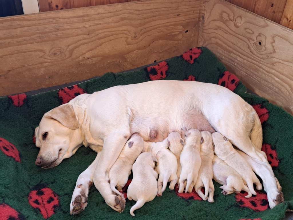 Den 23/2 föddes Peallaidh Sarvodaya ”Sam” och Mandylike’s Need You ”Yra”. Även det en jämn kull med starka och fina valpar. Det blev 3 svarta hanar, 1 gul hane, 2 svarta tikar och 4 gula tikar 😀 ❤