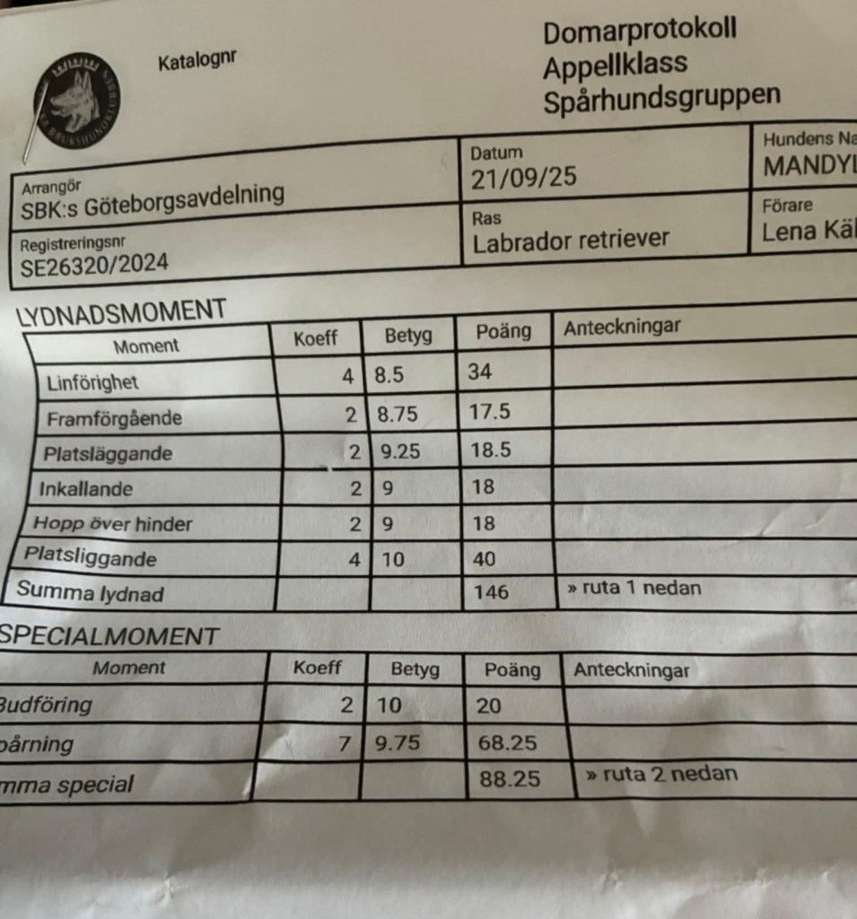 Mandylike’s Dynamite ”Trazzel” & Lena Källtén har tävlat appellspår och det gick lysande! ”Vilken liten stjärna jag har säger Lena och numera kan han titulera sig lägre klass hund” ❤ 😀