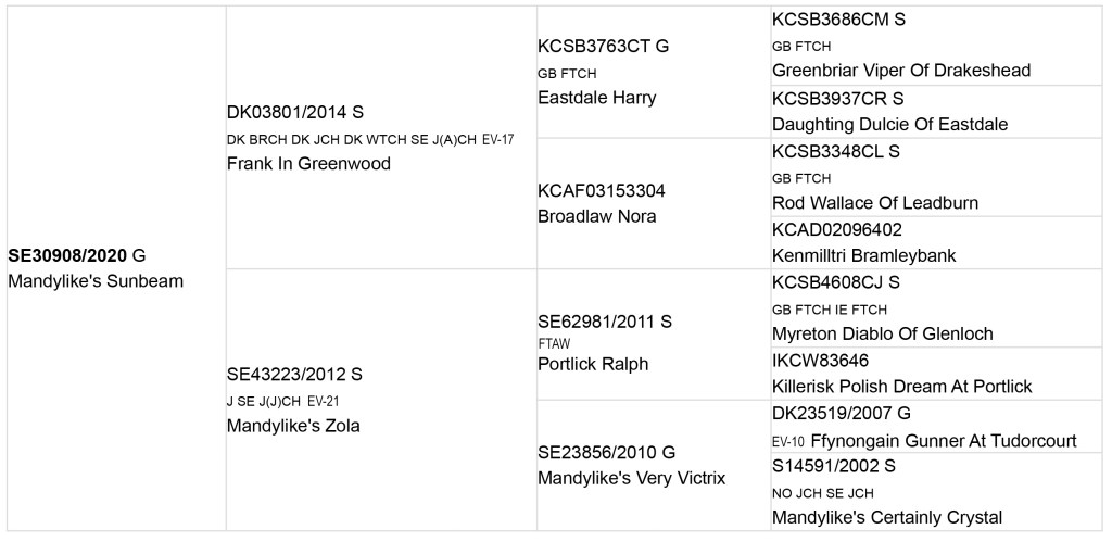 Mandylike’s Sunbeam ”Sol” Född 12 april 2020 Hereditärt fri PRA, CNM, SD 2 Carrier, Stargardt Clear Excellent NBKL Länk till rasdata Stamtavla för Mandylike´s Sunbeam