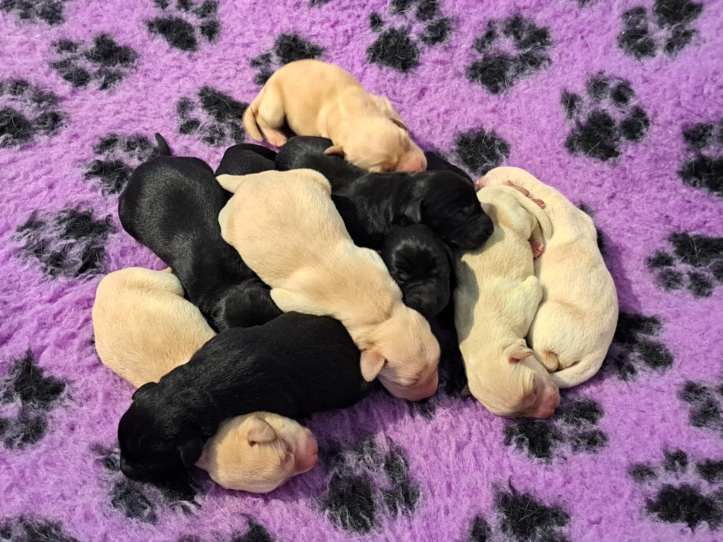 Den 23/2 föddes valparna efter Peallaidh Sarvodaya ”Sam” och Mandylike’s Need You ”Yra”. Även detta en jämn kull med starka och fina valpar. Det blev 3 svarta hanar, 1 gul hane, 2 svarta tikar och 4 gula tikar ❤ 😀